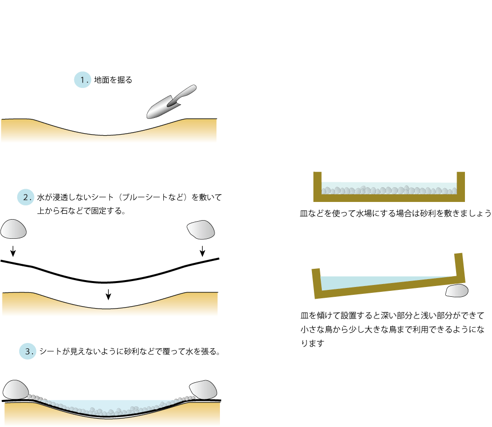 A pond is ideal but you can make use of household plates and other similar