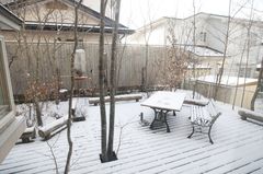 コメント:整備してから、5年ぐらいになる。手作りのウッドデッキ。樹木は青