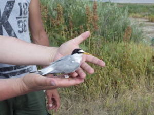 サシ、アジサシを捕獲することに成功した。捕獲した個体はジオロケーターの