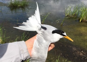 2013年に初めてリトアニアに足を運び、2014年から調査を開始。毎年調査を重ね、コアジサシの渡りを究明する調査も2019年で6年目となります。2018年までに46羽のコアジサシを捕獲し、そのうち、20羽にジオロケーターを、9羽にGPSを装着しました。2017年にはジオロケーターを装着した7個体を再捕獲することに成功し、彼らの渡りルートを解明することができました。加えてスペインで標識された個体を再捕獲するなど、大きな成果をあげ、これらの成果についてはカナダで行われた