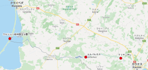 ジオロケーターのデータを見ていると、コアジサシはネムナス川を下り、バルト海に出てからアフリカまで南下していきます。リトアニアに戻ってくるときも同じルートです。そのバルト海からリトアニアに入る、またはリトアニアから出る辺りで留まっているのではと思われるようなデータが見られました。そのため、コアジサシにとって良い環境があるかもしれないと考え、その付近の調査に行きました。場所はクルシュー砂洲国立公園です。ここにはロシア国境に至るまで長い砂浜が広がっています。私たちはフェリーに乗り上陸。いくつかの場所を確認しながらロシア国境付近までたどり着きました。広大な砂洲がロシア国境まで広がっていましたが、残念ながらコアジサシを確認することはできませんでした。しかし、中継地として利用できるだけの環境があることが分かりました。
