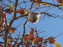 掃除は女房が担当し頑張っています。冬の餌のない時期に熟した柿やミカンの