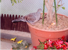 コメント:ベランダに鳥が見える風景は楽しい。マンションのベランダという