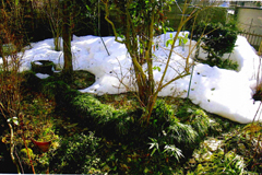 エデの広葉樹が僅かの人工庭である。ツバキの垣根の間に僅かにあるアオキ等