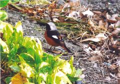 は珍しい野鳥が物干し近くの庭にある野菜を食べに来ますので、また写真を送