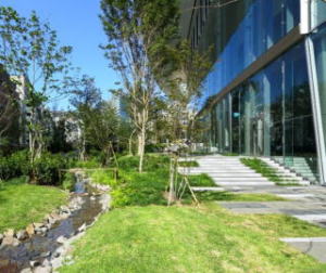 在来種を主体とする草花や、樹林、水辺等の生物多様性に配慮して鳥や昆虫等が集う環境を創り出すことで、JHEP認証の最高ランク(AAA)を取得するとともに、訪れる人々には、四季折々の花木や草花を楽しめる都心のオアシスになっています。