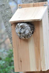 冬になってからフクロウ用巣箱を架けました。驚いたのは、架けてすぐにフクロウが中に入ったことです。