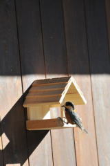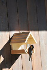 ヤマガラのような小さいサイズの野鳥にちょうどいいエサ台です。
