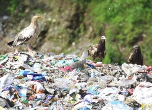 ゴミ集積場の様子 ゴミ集積場に集まるエジプトハゲワシ