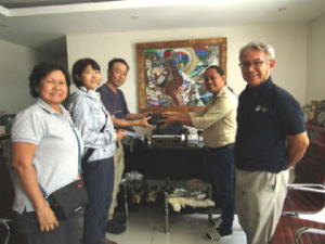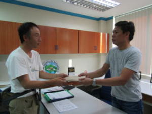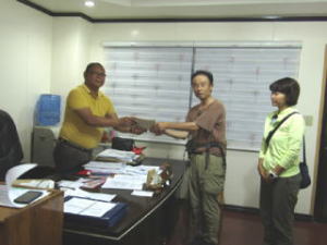植樹祭に参加している皆さんと別れて、次は助成金の受け渡しです。経団連からいただいた森林再生のための助成金を町へ届けました。町からは大変感謝され、森林再生により力を入れてくれることを約束してくれました。これでチバンバンの森林再生もより発展していくことでしょう。