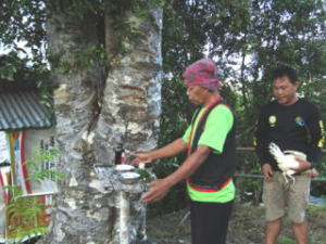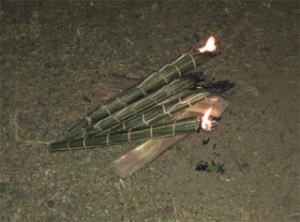 アルマシガの樹液をココナツの葉で巻いたたいまつ