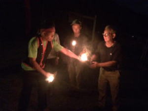 到着した現場は真っ暗闇。その中で私たちを出迎えるための儀式が行われました。地元では燃料として使われるアルマシガの樹液の塊をココナツの葉でくるんだたいまつに火が点けられ、私たちに手渡されました。それを別の樹液の塊に点火します。電気のない中で生活してきた現地の方々の生活を体験することで、私たちもこの活動への仲間入りができたことになります。この神聖な儀式を見ていると、植樹をする人たちの未来に向けた強い思いが伝わってきました。