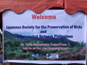 経団連自然保護基金からの助成を受けて、フィリピン共和国での活動に参画してきました。この活動は渡りをする猛禽類を保全することを目的としています。日本とフィリピン共和国など、多国間を移動する猛禽類を保全していくため、これまで連盟では、双眼鏡の寄付や渡りに関する調査で協力してきましたが、今回は森林再生に参画します。この森林再生は、アカハラダカのような自然林で採餌してエネルギー補給をする種のために餌場を創出しようという取り組みですが、同じ渡りをするサシバや、在来種であるフィリピンワシのような希少種にとっても、生息のために必要な環境の確保という点で保全につながる取り組みです。