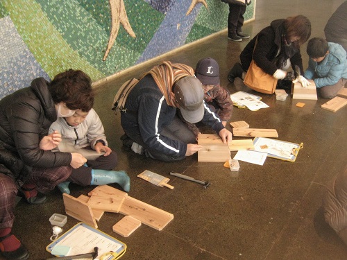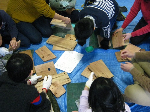 巣箱を探して散策 親子で巣箱作り 完成した工作をみんなで鑑賞