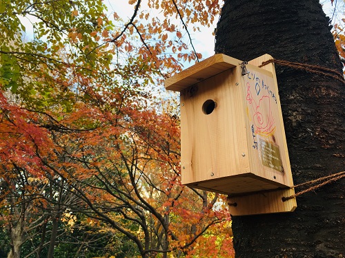 新宿御苑と共催で一般の親子を対象とした巣箱プログラム(巣箱作り・架け教室/巣箱調べ教室)を行っております。巣箱は冬に新宿御苑の「母と子の森」の木々に架け、翌春にはシジュウカラやヤマガラが出入りする姿を見ることができます。教室の中では巣箱についてのレクチャーのほか、野鳥の生態などを楽しく伝えています。