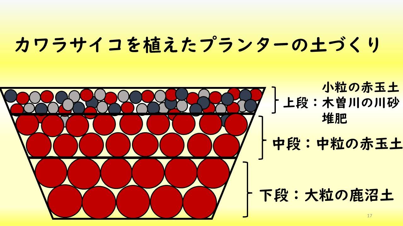 また、「カワラ姉妹の楽園」を市役所の花壇や公園の花壇等に作ることにより、大勢の人たちに本物の「花」を見ていただき、在来植物の保護の必要性を認知してもらうことができる。