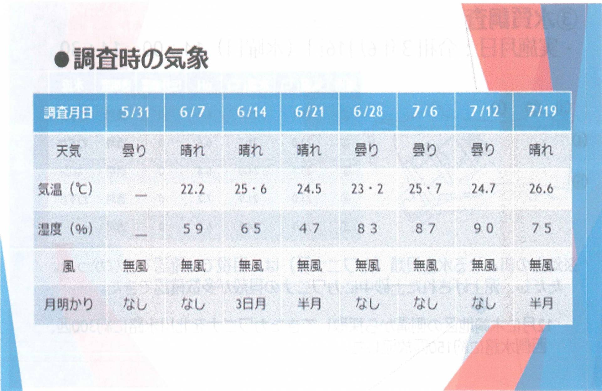 (2)調査期間:2021~2025(R3~27)年5~7月 毎週1回 日安俊(20:00) 1~1 1~15時間