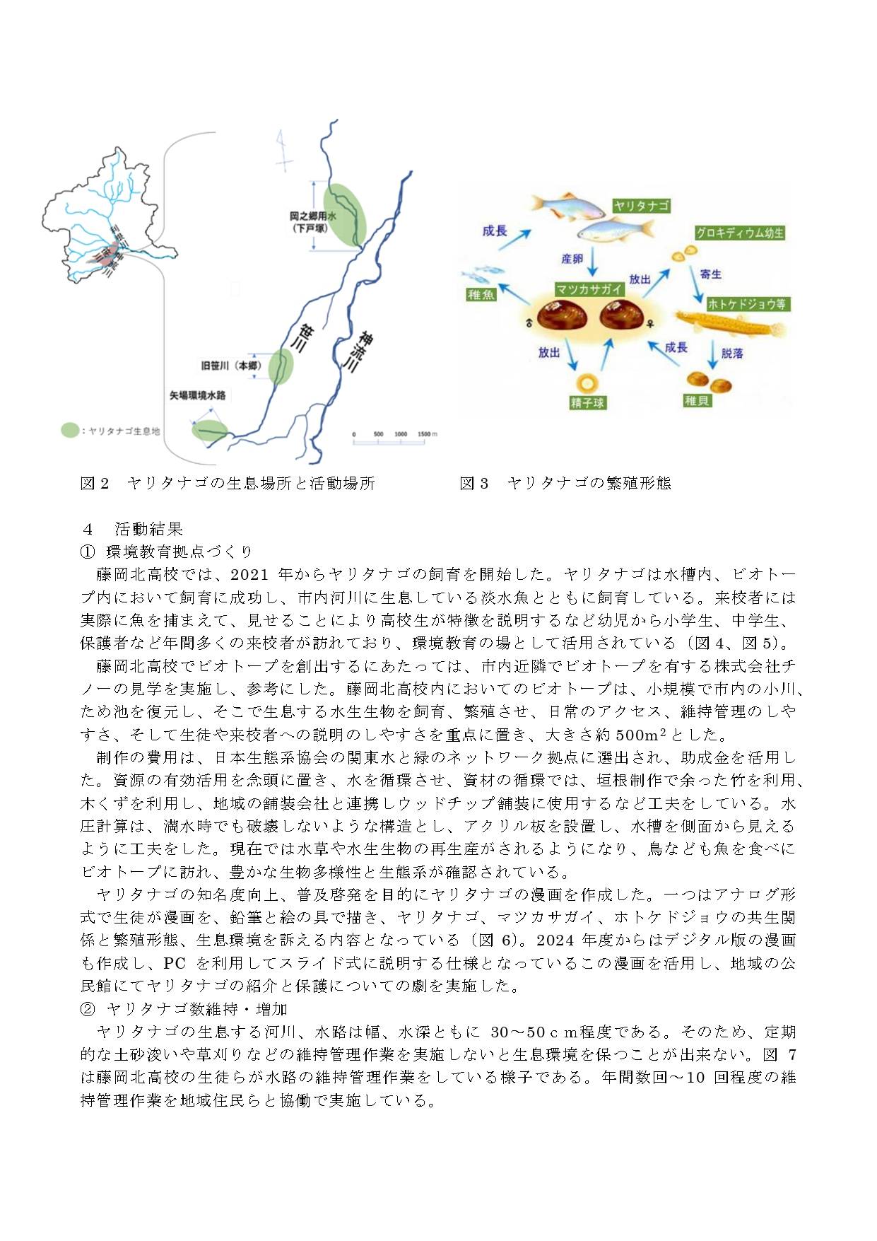 (1)藤岡市天然記念物ヤリタナゴの知名度向上、ヤリタナゴの住める環境理解のための普及・啓発活動(園児や来校者への教育)、環境教育・ESD実践動画100選入選