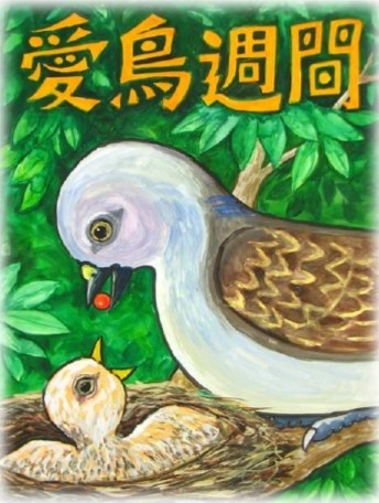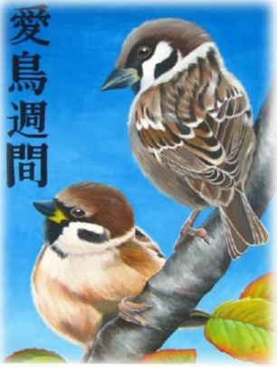 ○「愛鳥週間」の文字が力強く描かれているが、色あいは主張過ぎず、遠目からでもわかるバランスの取れた大きさと配置になっているので、ポスターのデザインとして適している。
