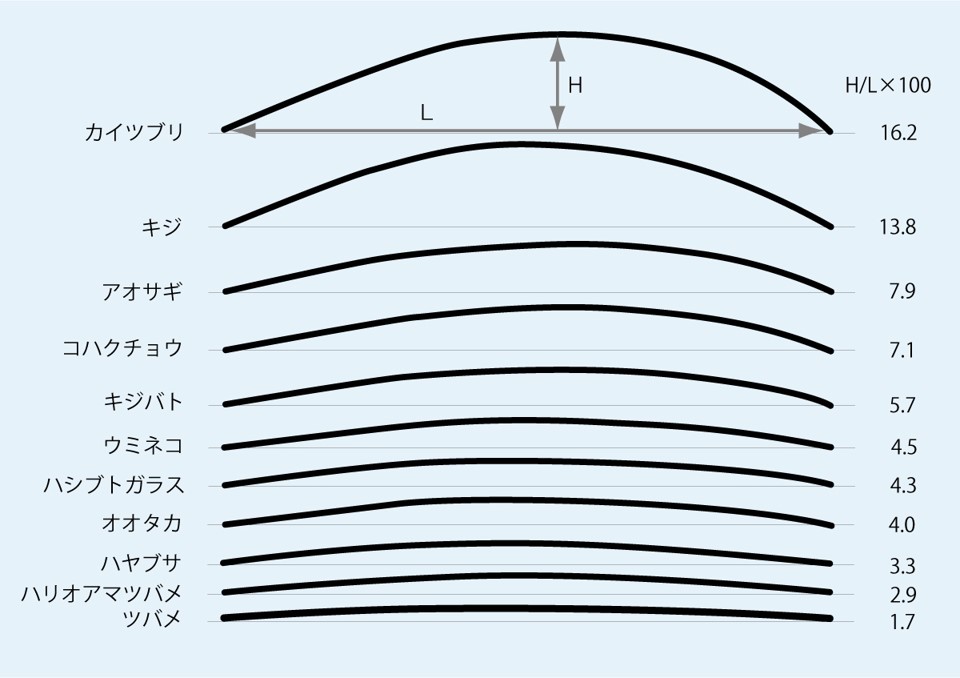 図2. 初列風切の湾曲の度合い