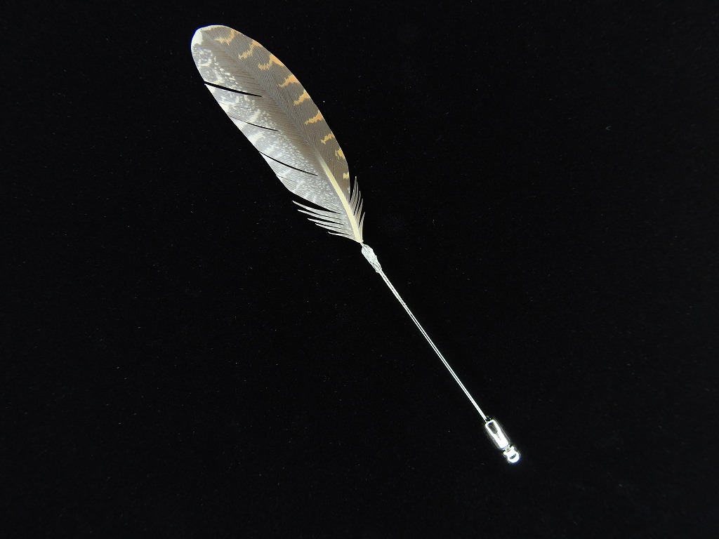 粘土の羽根飾りは職人が一枚一枚丹誠込めて創り上げた、アマミヤマシギ(次列風切羽)の樹脂粘土製ハットピンです。本物とは違い、柔軟な素材ですので曲がっても元に戻せます。
