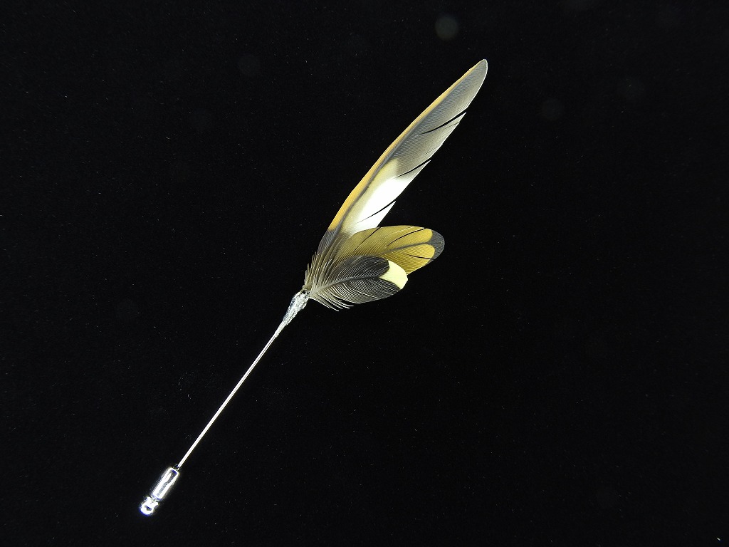 粘土の羽根飾りは職人が一枚一枚丹誠込めて創り上げた、オオトラツグミの樹脂粘土製ハットピン(小・中・大)です。本物とは違い、柔軟な素材ですので曲がっても元に戻せます。