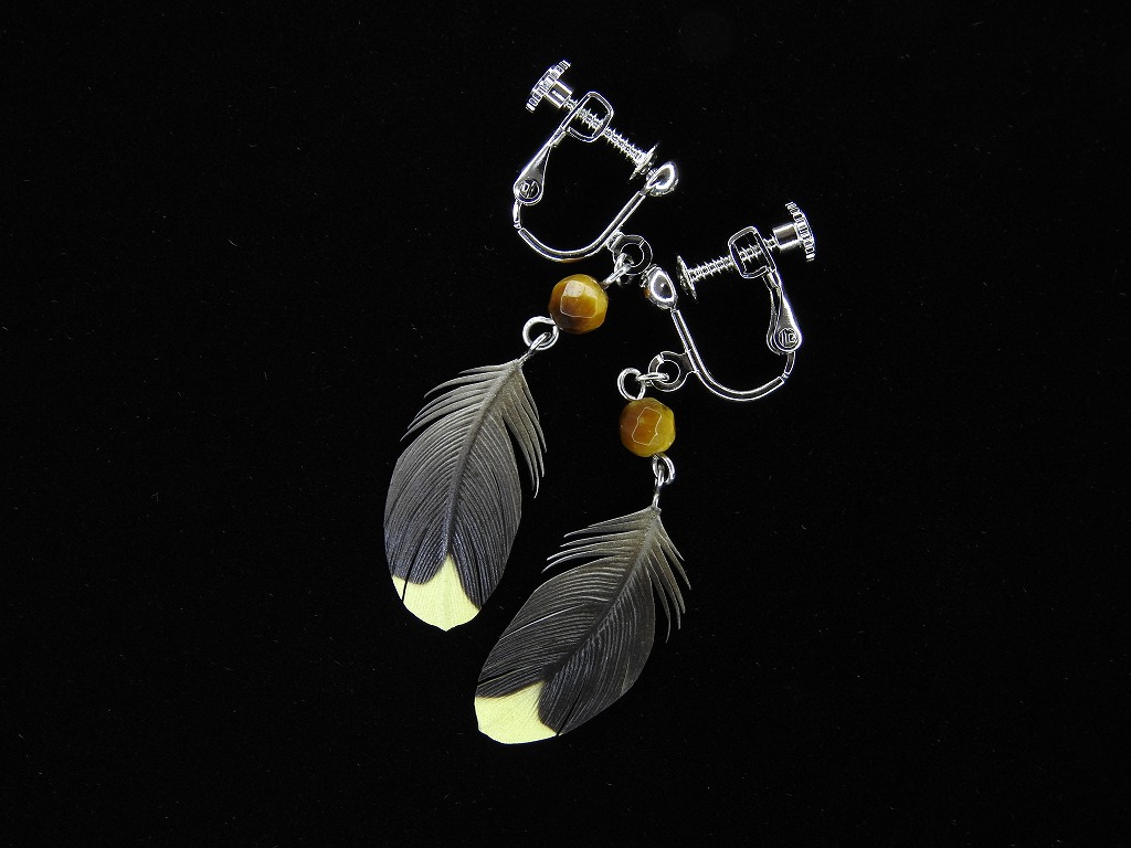 粘土の羽根飾りは職人が一枚一枚丹誠込めて創り上げた、オオトラツグミの樹脂粘土製のピアス/イヤリング(小)です。本物とは違い、柔軟な素材ですので曲がっても元に戻せます。