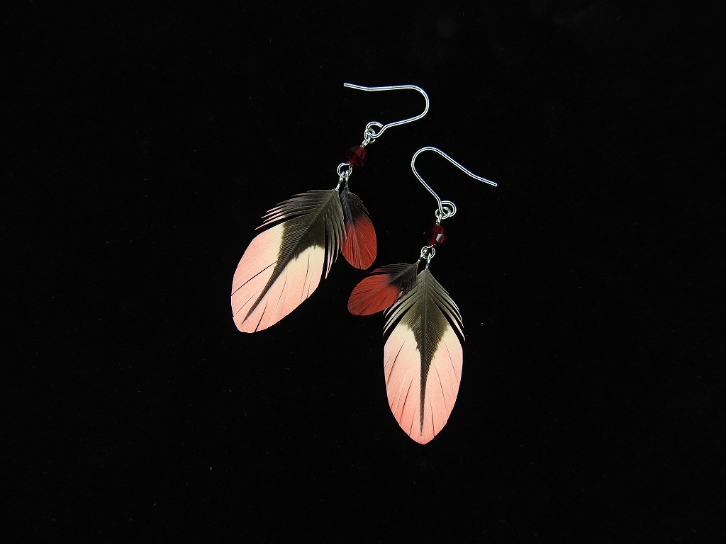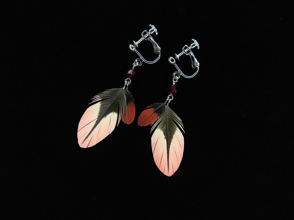 粘土の羽根飾りは職人が一枚一枚丹誠込めて創り上げた、オーストンオオアカゲラの樹脂粘土製のピアス/イヤリングです。本物とは違い、柔軟な素材ですので曲がっても元に戻せます。