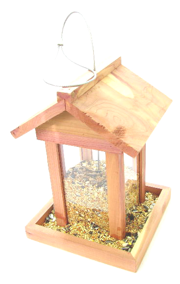 4面から餌が出る縦長のフィーダーです。側面のガラスを開けると、下の部分から餌が補充できます。
