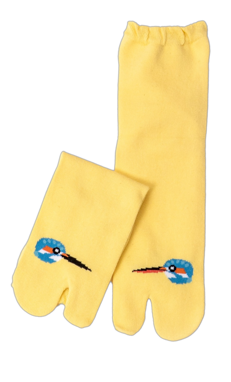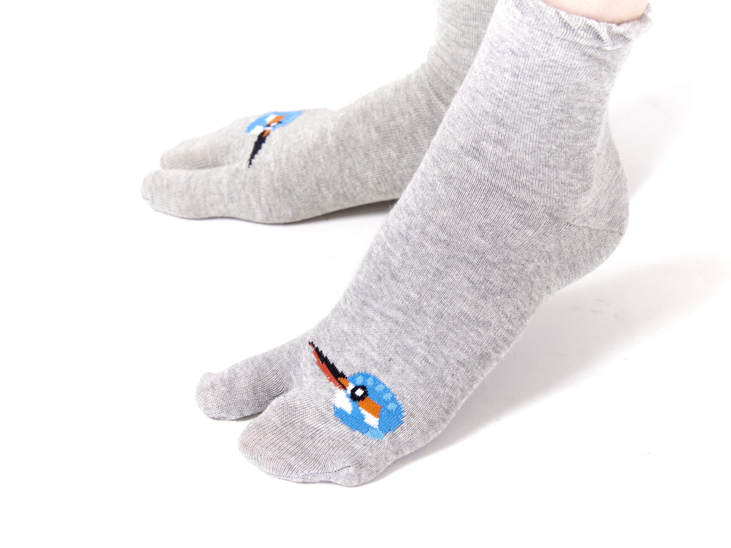 かわいい鳥の絵が刺しゅうされた足袋ソックス。やわらかな履き心地で長時間履いてもラクチン!お気に入りの野鳥と一緒にお出かけ(TABI)しませんか♪