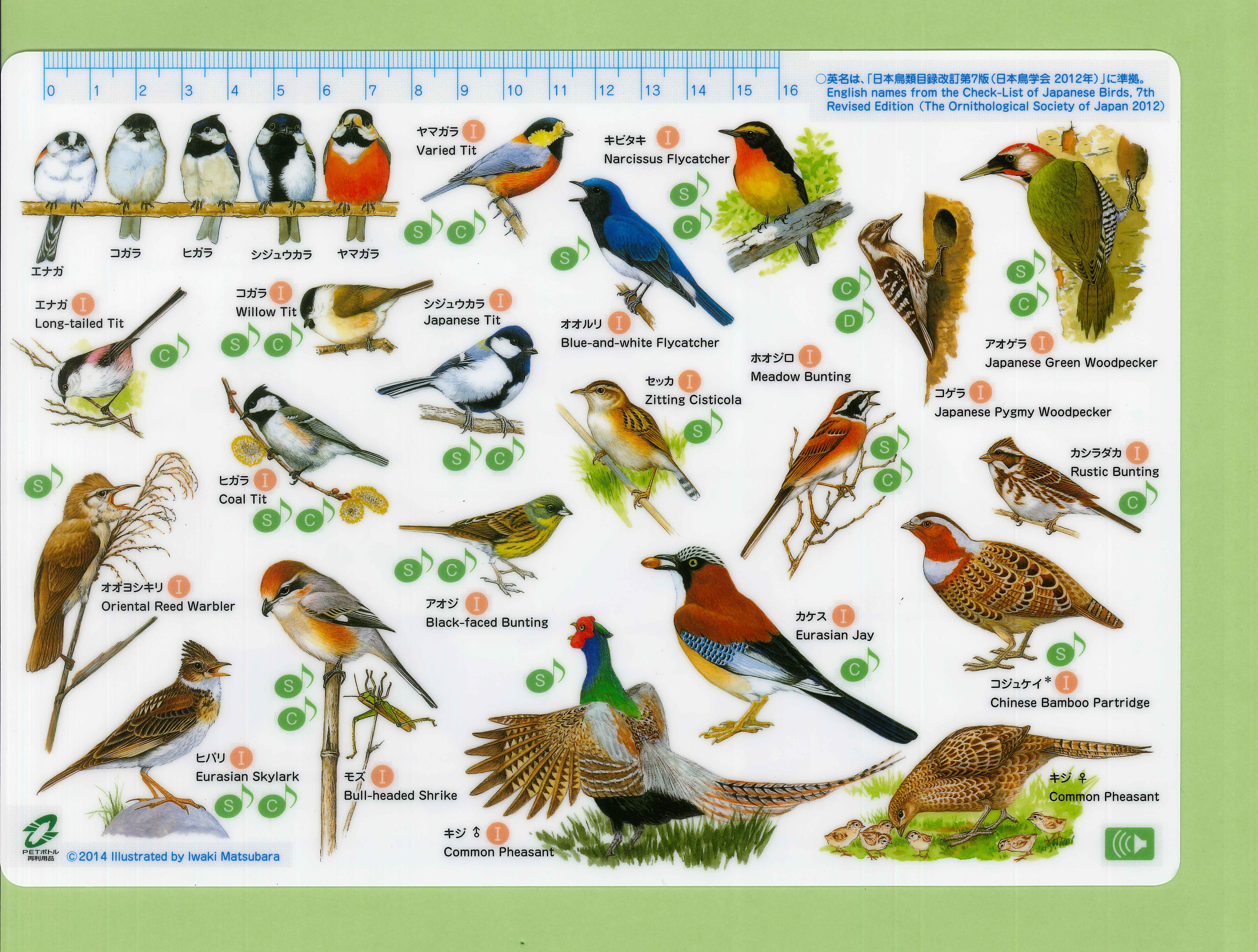 本シートには、私たちの身近な環境で見られる野鳥 全37種 を掲載しています。