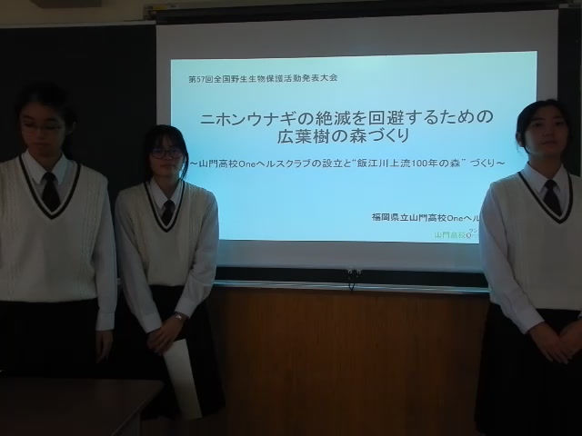 山門高校Oneヘルスクラブは,伝習館高校が2014年から行っているニホンウナギのサンクチュアリづくりを引き継ぎ、サンクチュアリに欠かすことができない、飯江川上流100年の森づくりを行っています。